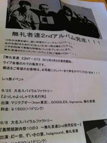 無礼者達レコ発ライブせまーる。